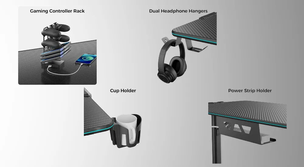 This desk features a modern and minimalistic look that fits effortlessly into any room. Measuring 44 inches, it’s compact enough for small spaces but offers ample surface area for your gaming gear. Its sleek lines and professional finish add a touch of sophistication.