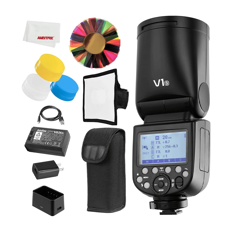 This TTL flash offers powerful performance with features like high-speed sync, adjustable power output, and a 2600mAh rechargeable battery for extended shooting sessions. Its magnetic accessory mount allows for quick attachment of light modifiers, giving you creative flexibility on the go. Compatible with Sony cameras, the Godox V1 ensures seamless communication and control for effortless shooting.