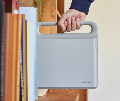 Captivating gray color, hidden side buckles, and finely textured ABS for durability.