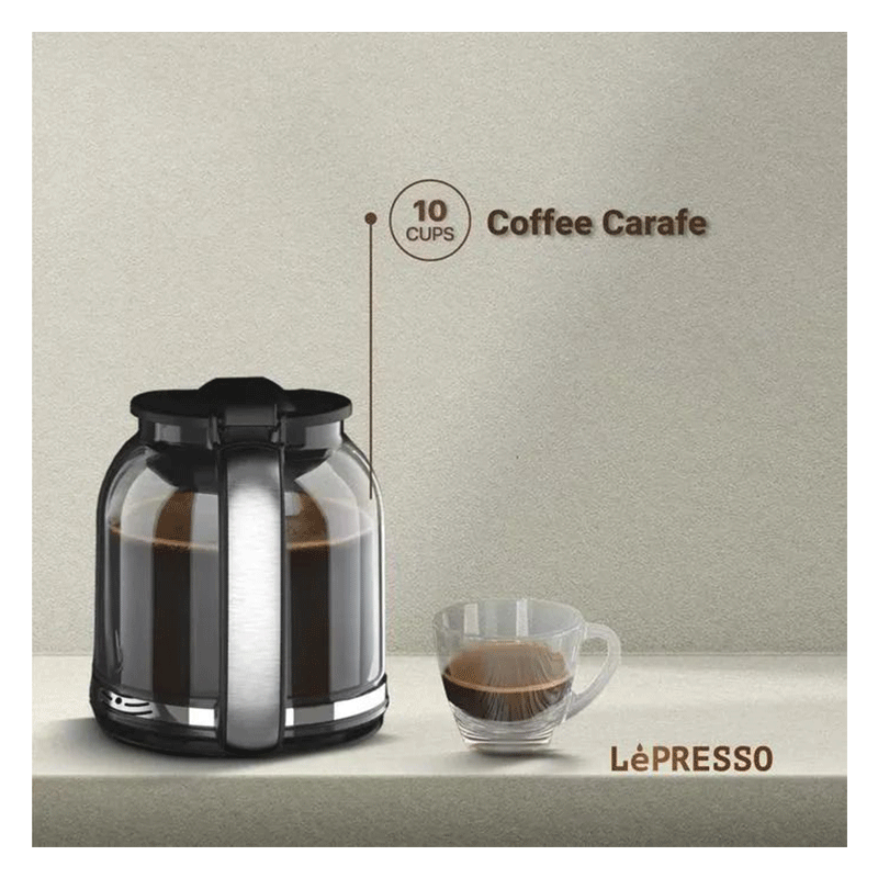 The LePresso Dual Brew, with a 20 Bar pressure system, expresses maximum flavor and aroma from your coffee grounds for bold and full-bodied taste. The 10-cup coffee carafe will let you have enough brewing for yourself, your family, or even guests over for company-perfect, whether personally or socially.