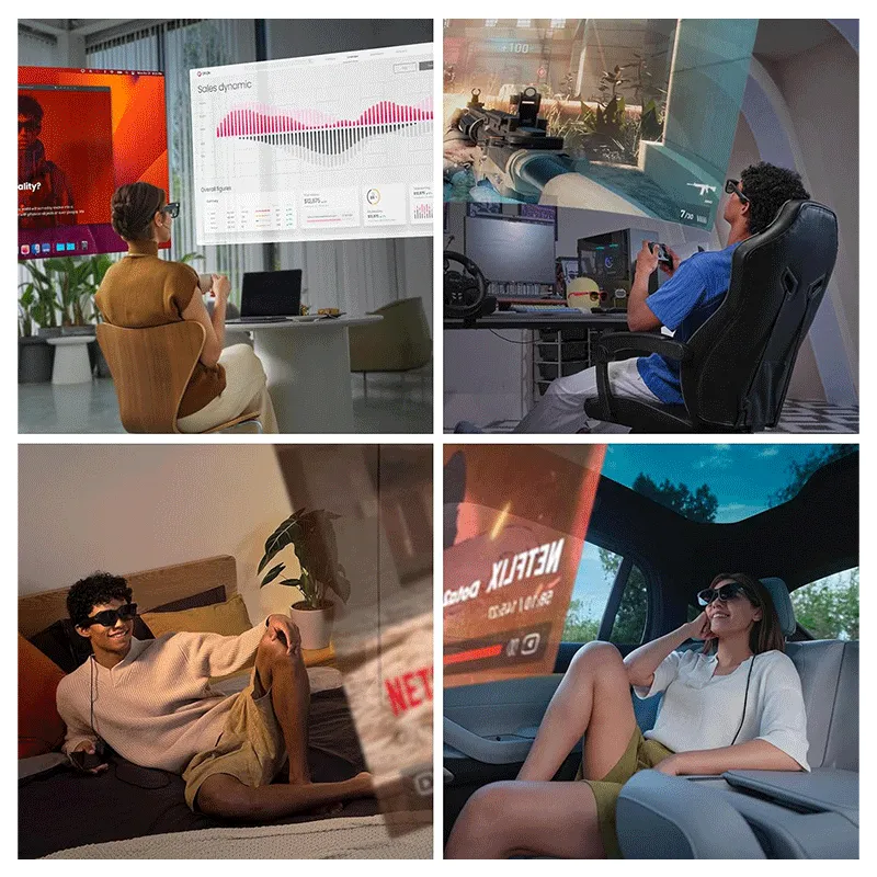 Designed for extended wear, these smart glasses are lightweight, ensuring comfort even during long sessions of gaming or viewing.